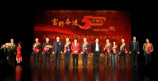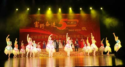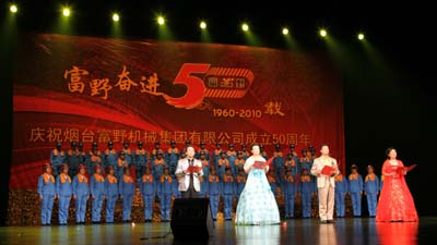2010年11月7日上午,煙臺富野機械集團有限公司成立五十周年盛典暨大型文藝演出在煙臺大劇院隆重舉行。中國對外經(jīng)貿(mào)企業(yè)協(xié)會副會長、山東省對外經(jīng)貿(mào)協(xié)會煙臺分會會長許志強,煙臺市經(jīng)濟和信息化委員會主任孫濤,煙臺市工商業(yè)聯(lián)合會主席夏曉峰,煙臺市民營企業(yè)協(xié)會會長欒魯閩,煙臺市機電國有控股有限公司董事長趙衛(wèi)紅,煙臺市總工會副主席張曉東,原煙臺市機械局的領(lǐng)導(dǎo)、機械行業(yè)企業(yè)及其他兄弟企事業(yè)單位的代表、集團老領(lǐng)導(dǎo)以及集團所屬各企業(yè)1100余名員工共同參加了慶典活動。